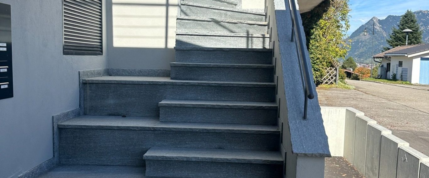 Wir realisieren die fachgerechte Verlegung von Treppen im Innen- und Außenbereich mit höchstem Anspruch an Präzision, Design und Langlebigkeit. Ob Naturstein, Feinsteinzeug oder Großformate - jede Stufe wird exakt zugeschnitten und perfekt ausgeführt.